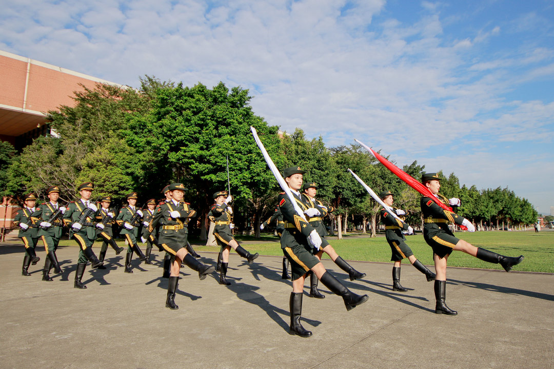 廣州校區(qū)東校園國(guó)旗班正步走(來(lái)源:黨委宣傳部 肖遙攝)