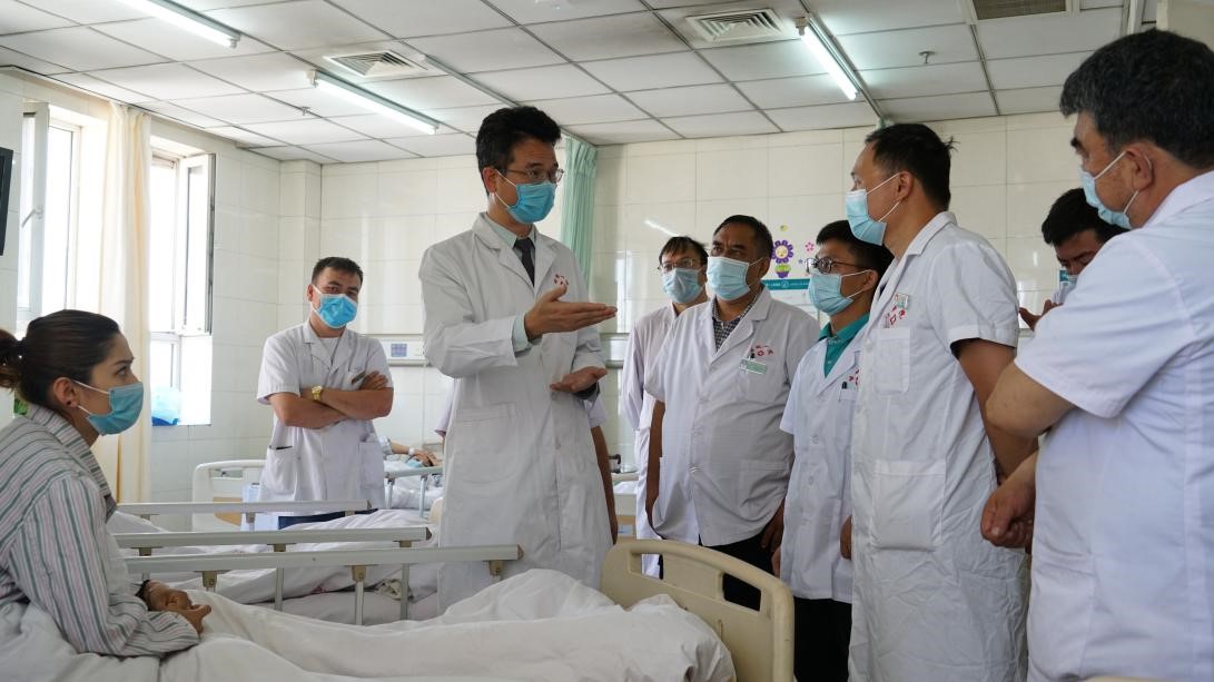 林天歆(左三)在新疆喀地一院臨床科室開展調研工作(來源:孫逸仙紀念醫院)
