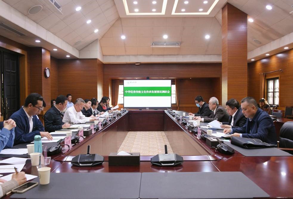 教務部主任陳省平詳細介紹了我校中華優秀傳統文化傳承發展工作情況。中國語言文學系、歷史學系、哲學系、外國語學院、藝術學院、體育部、黨委學生工作部、文獻與文化遺產管理部相關負責人分別發言匯報。座談會從專業教育、通識教育、思想道德教育、體育教育、藝術教育、勞動教育全方位展現了中山大學在中華優秀傳統文化傳承發展中的努力與成效。