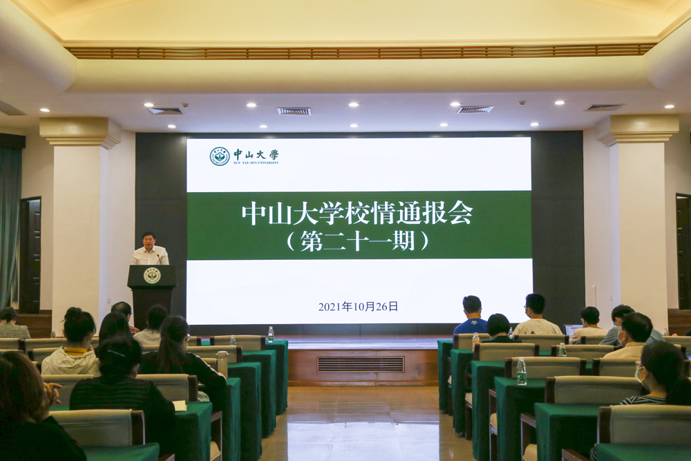 會上通報了教育部部長懷進鵬到我校調(diào)研、中央第五巡視組向中山大學黨委反饋巡視情況、學校黨委召開落實中央巡視整改任務工作動員部署會、陳春聲書記帶隊赴梅州推動對口幫扶工作、國亞萍副書記帶隊赴連州市豐陽鎮(zhèn)開展駐鎮(zhèn)幫鎮(zhèn)扶村工作調(diào)研、國家航天局引力波研究中心揭牌成立、我校獲批全國首批“退役軍人事務研究基地”、我校2021年度國家自然科學基金資助再創(chuàng)佳績、學校舉行開學典禮迎首屆大類招生本科生、學校與各二級單位簽訂“十四五”規(guī)劃任務書、陳春聲書記和羅俊校長慰問我校附屬第一醫(yī)院南丁格爾獎獲得者成守珍、《中山大學學報》(社會科學版)入選北京圖博會2021中國精品期刊展、我校榮獲全國計算機類課程實驗教學案例設計競賽一等獎、我校主辦2021海峽兩岸暨港澳互聯(lián)網(wǎng)發(fā)展論壇在烏鎮(zhèn)召開,主要基建項目進展等共22項內(nèi)容。