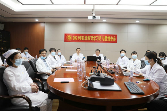 會(huì)上,中心黨委書記武少新作題為《學(xué)黨史悟思想 守紀(jì)律鑄忠誠(chéng)——關(guān)于推進(jìn)全面從嚴(yán)治黨向縱深發(fā)展的幾點(diǎn)認(rèn)識(shí)與思考》的主題報(bào)告。他首先從黨的十八大前后全面從嚴(yán)治黨的側(cè)重點(diǎn)對(duì)比、黨的十八大以來(lái)全面從嚴(yán)治黨的成就兩個(gè)方面剖析了當(dāng)前全面從嚴(yán)治黨的新形勢(shì)和新要求,提醒大家要充分認(rèn)識(shí)全面從嚴(yán)治黨的新形勢(shì),與時(shí)俱進(jìn),活在當(dāng)下。具體在醫(yī)療工作中,就是要養(yǎng)成好的行醫(yī)習(xí)慣,處理好醫(yī)患關(guān)系;具體到日常生活中,就是要養(yǎng)成好的生活習(xí)慣,處理好個(gè)人生活關(guān)系。武少新書記通報(bào)了相關(guān)違紀(jì)違規(guī)案例,希望大家對(duì)警示教育能入腦入心,真正做到心有所戒,行有所止。他圍繞以永遠(yuǎn)在路上的執(zhí)著推進(jìn)全面從嚴(yán)治黨治院,提出了三點(diǎn)要求:不斷提高“政治三力”,做政治上的明白人;把握好黨風(fēng)廉政建設(shè)與業(yè)務(wù)建設(shè)、學(xué)習(xí)制度與執(zhí)行制度、嚴(yán)管與厚愛、平臺(tái)與個(gè)人的“四個(gè)關(guān)系”,干凈擔(dān)當(dāng)作為;牢記初心使命,確保行穩(wěn)致遠(yuǎn)。