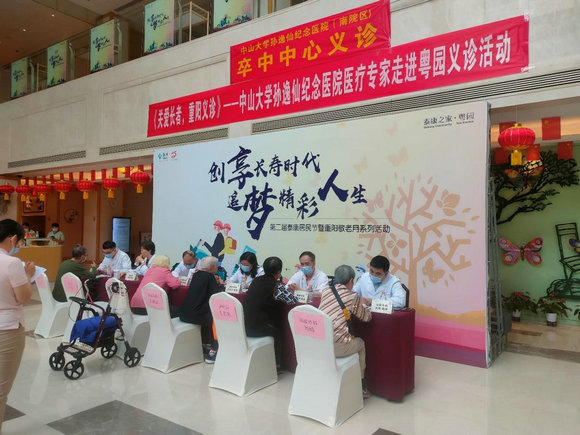 中大新聞網(wǎng)訊(通訊員黃睿)為傳承和弘揚中華民族尊老、敬老、愛老、助老的傳統(tǒng)美德,努力營造尊重、關(guān)心、愛護(hù)老年人的社會氛圍,10月14日,中山大學(xué)孫逸仙紀(jì)念醫(yī)院醫(yī)務(wù)部門診辦公室在姚和瑞副院長的帶領(lǐng)下,分別在醫(yī)院南院區(qū)和“泰康之家·粵園”開展了主題為情暖重陽“老有所愛、老有所醫(yī)”大型義診活動。