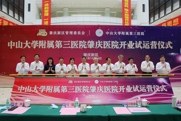 肇慶市委副書記、市長許曉雄,中山大學黨委常務副書記、副校長馬駿,廣東省衛生健康委員會二級巡視員陳礪,肇慶市委常委、常務副市長李奔,肇慶市副市長、肇慶新區黨工委書記唐小兵,肇慶市政府秘書長劉涇波,肇慶市衛健局局長劉志能,鼎湖區委書記、肇慶新區黨工委副書記、管委會主任劉運通,附屬第三醫院院長戎利民,黨委書記吳京洪,榮譽院長陳規劃,黨委副書記、紀委書記趙婉文,副院長楊欽泰、黑子清,總會計師楊正云,肇慶醫院管委會主任衛洪波,院長助理魏波等出席開業試運營儀式。唐小兵副市長主持儀式。