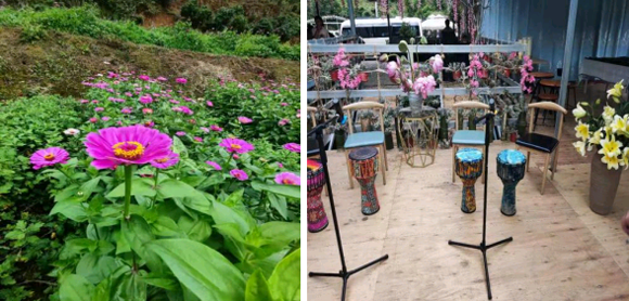 左圖:紅塘村的菊花園;右圖:紅塘村的風(fēng)情旅游園(來源:校工會 石曉玲攝)