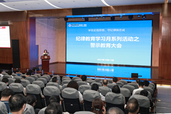 中大新聞網訊(通訊員陳安琪)為深入學習貫徹習近平新時代中國特色社會主義思想,發揮全面從嚴治黨引領保障作用,推動醫院全面從嚴治黨向縱深發展,結合學校紀律教育學習月活動要求,10月11日,我校附屬第一醫院黨委以“學黨史悟思想,守紀律鑄忠誠”為主題召開紀律教育學習月警示教育大會。