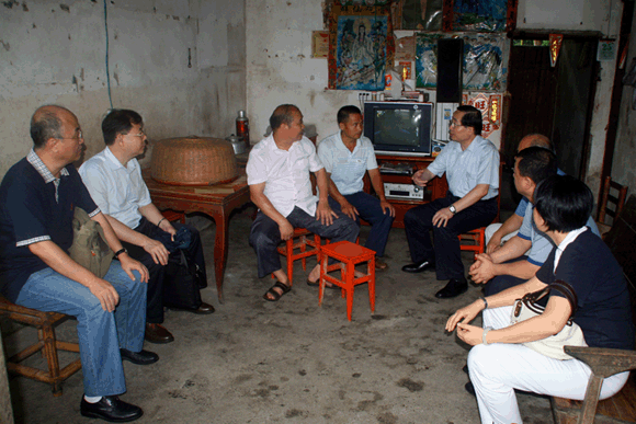 鄭德濤書記一行與連州市委書記黃裕團、市長劉澤和以及保安鎮干部進行了親切交談,詳細了解連州的經濟和社會發展情況、人文環境、自然條件以及扶貧開發“雙到”工作的開展情況。鄭德濤書記一行還深入種田村,看望我校駐村干部趙一波同志,并深入了解該村在脫貧致富上存在的困難,同時看望了3戶貧困村民。