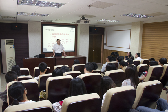 6月9日,由校黨委宣傳部主辦的2011—2012年度“十佳學生記者(編輯)”和“優秀學生記者(編輯)”表彰會在南校區舉行。校黨委宣傳部領導出席表彰會,《中山大學報》、《中大學子》、網論、《領導參考》、5D空間、新聞中心及校區記者站等版塊的指導老師和學生記者代表近五十人參加了活動。
