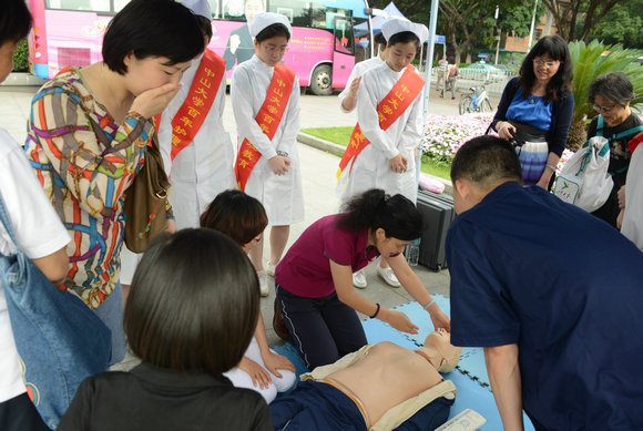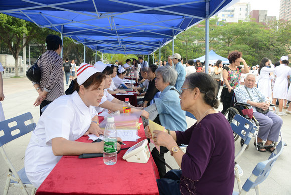 5月11日,101屆國際護士節前夕,紀念中山大學護理教育創辦100周年系列活動啟動儀式暨慶祝國際護士節大型義診活動在越秀區英雄廣場舉行,我校醫學部、醫院管理處、護理學院聯合8家附屬醫院設攤義診,200多位護理專業的醫學生重溫南丁格爾誓言。汪建平常務副校長出席啟動儀式并講話,中華護理學會成守珍副理事長、廣東省護理學會梁嘉定副理事長、護理學院謝文院長、張遠權書記、校護理委員會覃惠英主任及8家附屬醫院的護理工作者參加了活動。
