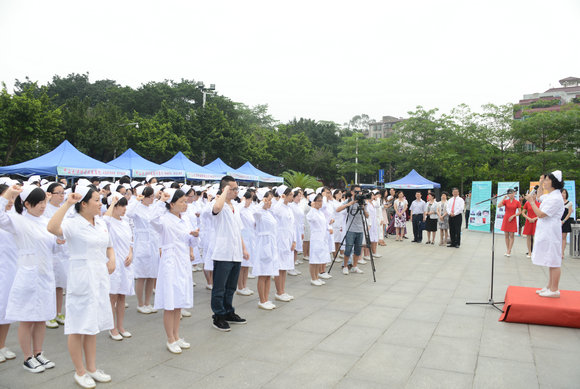 在廣東省護理學會梁嘉定副理事長的帶領下,未來的“白衣天使”們手握拳頭,莊嚴宣誓:“終身純潔,忠貞職守,盡力提高護理之標準;勿為有損之事,勿取服或故用有害之藥;慎守病人家務及秘密,竭誠協助醫生之診治,務謀病者之福利。”
