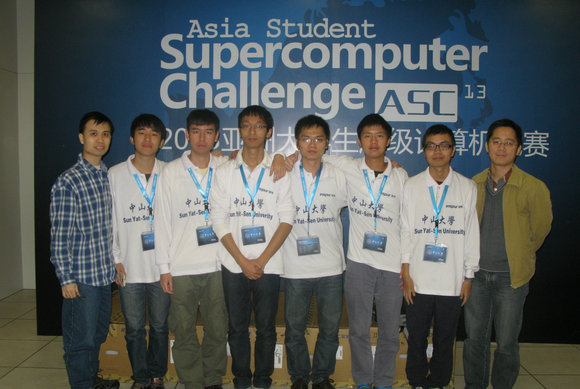 我校參賽代表隊(duì)由數(shù)學(xué)與計(jì)算科學(xué)學(xué)院許躍生教授科研團(tuán)隊(duì)和網(wǎng)絡(luò)與信息技術(shù)中心聯(lián)合組建,由張永東、關(guān)偉豪、范筑軍、葉緯材(博士后)等老師指導(dǎo)。參賽成員(學(xué)生)有數(shù)計(jì)學(xué)院植美鵬、梁德澎、張良福,軟件學(xué)院的陳周榮、陳照,信科院的陳炳煒。參賽隊(duì)從今年2月中旬開始準(zhǔn)備本次競賽,借助校內(nèi)的超算平臺(tái)以及許躍生教授帶領(lǐng)的“計(jì)算科學(xué)科研創(chuàng)新團(tuán)隊(duì)”和廣東省計(jì)算科學(xué)重點(diǎn)實(shí)驗(yàn)室所搭建的“南方一號(hào)”GPU集群進(jìn)行前期的準(zhǔn)備訓(xùn)練和參數(shù)試驗(yàn)。許躍生教授在代表隊(duì)赴申參賽前,作了賽前動(dòng)員和指導(dǎo),鼓勵(lì)同學(xué)們?cè)谫惓龊贸煽兊耐瑫r(shí),學(xué)習(xí)友隊(duì)的優(yōu)點(diǎn),提高中大的超算水平。代表隊(duì)同學(xué)們刻苦努力不負(fù)重托,通過初賽,最終挺進(jìn)決賽并獲得亞洲區(qū)第四、中國大陸區(qū)第三的佳績,比去年獲得“首屆中國大學(xué)生超級(jí)計(jì)算機(jī)競賽”第四名的成績前進(jìn)一名。