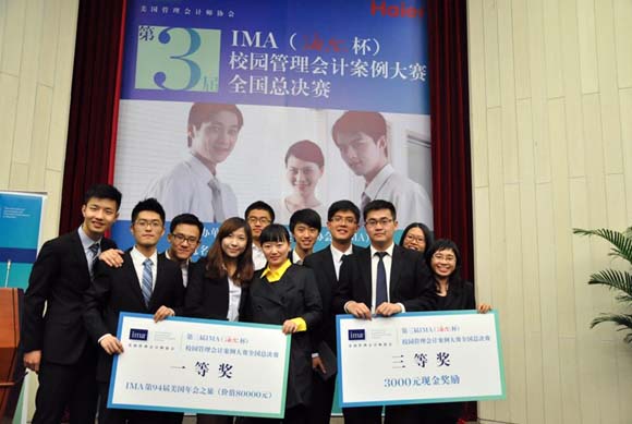 4月14日,在北京大學光華管理學院舉行的第三屆IMA校園管理會計案例大賽全國總決賽中,管理學院代表隊擊敗了來自北京大學等知名高校的選手,從13支代表隊中脫穎而出,繼2010年第二屆大賽后,再次摘得全國總決賽的桂冠。冠軍隊將作為中國高校的唯一代表隊赴美參加6月22日在新奧爾良市舉行的第94屆IMA年會,與國際學生同臺展示案例分析。