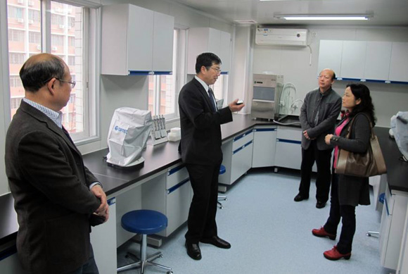 梁劬(中)參觀SYSU-MSU熱帶蟲媒控制聯合研究中心實驗室