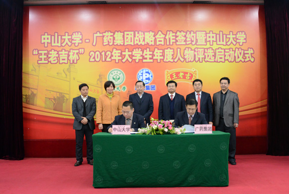 在昨日下午的簽約儀式上,廣藥集團和學校共同成立中山大學-廣藥集團大學生年度人物評選獎勵基金,在今后三年的年度人物評選活動中,將以“王老吉”的名稱冠名我校年度人物的評選活動。在儀式上,朱孔軍副書記宣布中山大學“王老吉杯”2012年大學生年度人物評選活動正式啟動,由此拉開了我校2012年大學生年度人物評選的序幕。