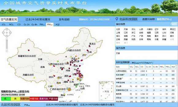 2013年1月1日開(kāi)始,由我校先進(jìn)技術(shù)研究院與工學(xué)院承擔(dān)研發(fā)的全國(guó)城市空氣質(zhì)量實(shí)況發(fā)布平臺(tái)在中國(guó)環(huán)境監(jiān)測(cè)總站上線使用。該平臺(tái)按照《環(huán)境空氣質(zhì)量標(biāo)準(zhǔn)》(GB3095-2012)(簡(jiǎn)稱“空氣質(zhì)量新標(biāo)準(zhǔn)”)要求,實(shí)時(shí)發(fā)布京津冀、長(zhǎng)三角、珠三角等重點(diǎn)區(qū)域及直轄市、省會(huì)城市等共74個(gè)城市、496個(gè)監(jiān)測(cè)點(diǎn)位的二氧化硫(SO2)、二氧化氮(NO2)、可吸入顆粒物(PM10)、臭氧(O3)、一氧化碳(CO) 和細(xì)顆粒物(PM2.5)等6項(xiàng)基本項(xiàng)目的實(shí)時(shí)監(jiān)測(cè)數(shù)據(jù)和AQI指數(shù)等信息。