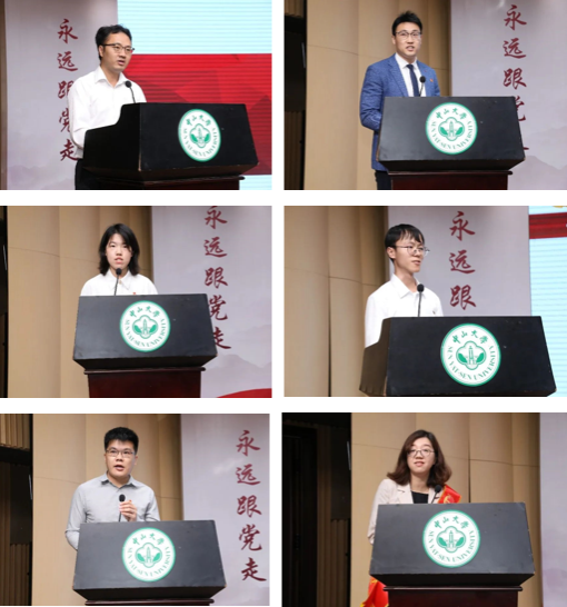 電子與信息工程學院教授、附屬第一醫院雙聘教授謝曦,共青團中山大學附屬第五醫院委員會代表,共青團中山大學法學院法學專業本科生2019級2班支部委員會代表,歷史學系2021級研究生黃曉波,共青團中山大學藥學院(深圳)委員會代表,共青團中山大學光華口腔醫學院委員會書記黎琳作為獲獎代表依次上臺分享團組織開展工作的先進事跡。