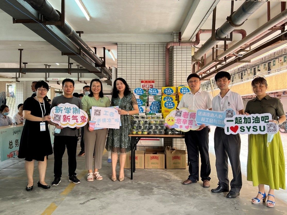 中大新聞網廣州9月6日電(通訊員陳文廣)處暑過后,南粵大地艷陽高照,我校迎來來自五湖四海的新生。火熱的迎新季,老師們辛勤的身影涌現在三校區五校園。校工會在迎新期間為高溫環境下的一線工作人員“送清涼”慰問,送上貼心服務。