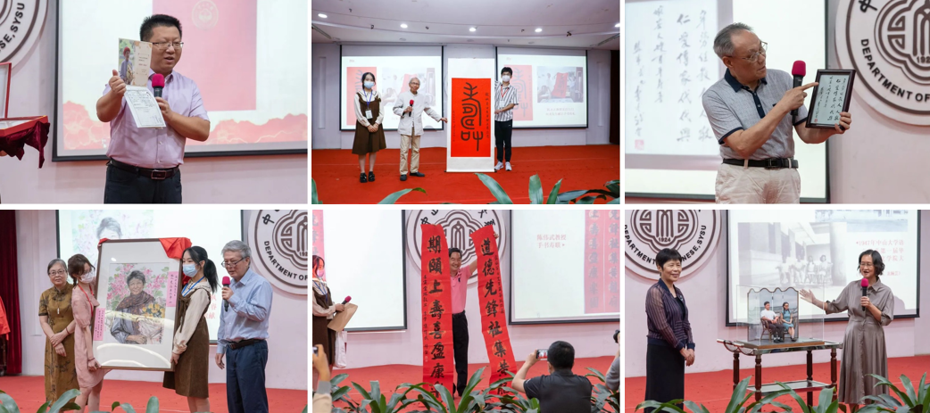 在慶典上,中國語言文學系師生代表、龍婉蕓先生好友獻上壽禮。中山大學民樂團同學為慶典帶來了精彩的樂器演奏節目。