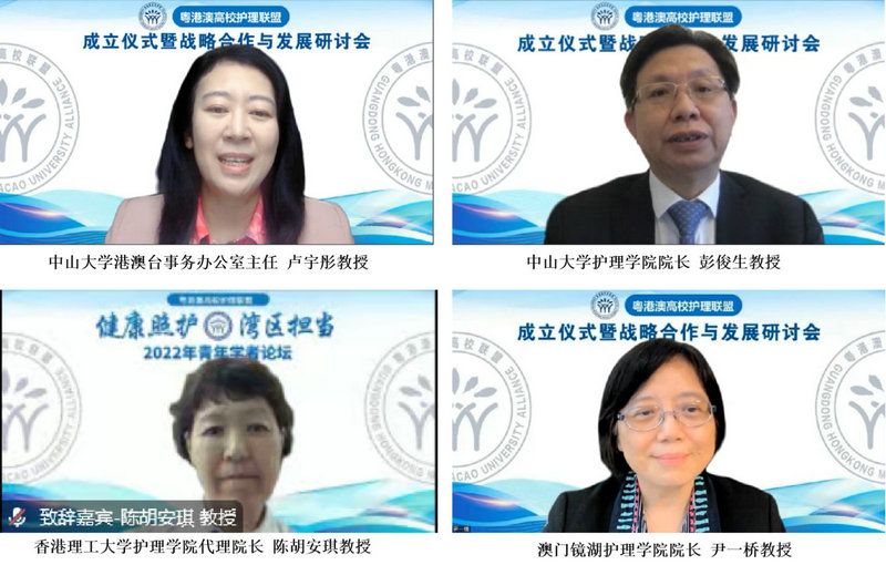 中大新聞網(wǎng)廣州11月29日電(通訊員蔡彤彤)11月26日上午,粵港澳高校護(hù)理聯(lián)盟成立儀式暨戰(zhàn)略合作與發(fā)展研討會通過線上線下相結(jié)合的形式舉行。粵港澳高校聯(lián)盟理事長單位中山大學(xué)常務(wù)副校長、附屬第一醫(yī)院院長肖海鵬教授,中山大學(xué)港澳臺事務(wù)辦公室主任、國家超級計(jì)算廣州中心主任盧宇彤教授,中山大學(xué)護(hù)理學(xué)院院長彭俊生教授,香港理工大學(xué)護(hù)理學(xué)院代理院長陳胡安琪教授,澳門鏡湖護(hù)理學(xué)院院長尹一橋教授出席開幕式并致辭。來自粵港澳高校護(hù)理聯(lián)盟共15家首批成員院校及附屬醫(yī)院的領(lǐng)導(dǎo)和專家學(xué)者參加了本次會議并進(jìn)行了深入交流研討。本次會議由粵港澳高校護(hù)理聯(lián)盟負(fù)責(zé)人、中山大學(xué)護(hù)理學(xué)院副院長張俊娥教授主持。