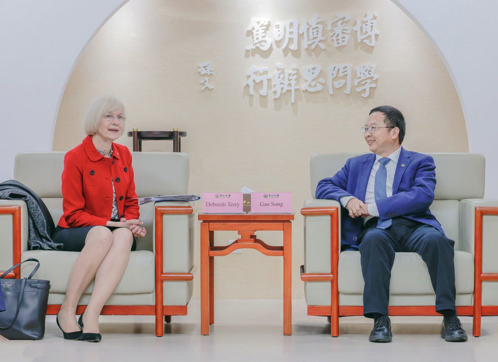 Deborah Terry校長對我校的熱情接待表示感謝,并介紹了該校的基本情況。她表示,兩校合作歷史悠久且關系密切,包括師生互訪、聯合培養、合辦研討會、科研合作等多種形式。期待本次來訪能夠加深了解,鞏固友誼,推動雙方在教育和科研領域建立更廣泛、更深厚的交流合作。