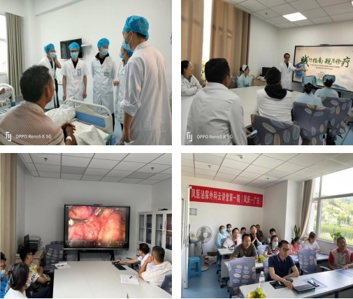 除了手術(shù)帶教,吳杰英還通過教學(xué)查房、視頻解讀、理論學(xué)習(xí)、線上會(huì)議等多項(xiàng)舉措,讓幫扶收獲更多成效。他每天堅(jiān)持查房,通過分析病情,梳理知識(shí)點(diǎn),讓當(dāng)?shù)蒯t(yī)生查漏補(bǔ)缺;精選常見的泌尿外科腹腔鏡手術(shù)視頻,講解不同入路腹腔鏡手術(shù)的術(shù)中解剖、操作流程、并發(fā)癥處理等知識(shí)點(diǎn),通過舉一反三,推動(dòng)科室醫(yī)生發(fā)現(xiàn)平時(shí)手術(shù)中的不足;開展多次理論學(xué)習(xí)講座,課件經(jīng)過精心準(zhǔn)備,貼近臨床需要;根據(jù)每位醫(yī)生的專業(yè)所長(zhǎng),鼓勵(lì)大家總結(jié)經(jīng)驗(yàn),學(xué)習(xí)文獻(xiàn)查閱、課件制作,嘗試走上講臺(tái)。他還組織科室與中山三院泌尿外科各分院連線,參加線上學(xué)術(shù)會(huì)議。這些措施得到當(dāng)?shù)蒯t(yī)生們的支持,收到良好的效果。