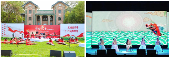 為慶祝中國共產黨成立100周年,在師生中開展黨史學習教育,弘揚偉大建黨精神,弘揚中華優秀傳統文化,致敬偉大新時代,學校舉辦了系列以黨史為題材的藝術活動。2021年舉辦“詩樂黨史”草地音樂會,“弦樂四重奏”草地音樂會、“我和我的祖國”民族音樂專場音樂會、“在燦爛陽光下”系列草地音樂會等9場活動,覆蓋三校區五校園全體師生員工,提升校園文化氛圍。在草地音樂會系列活動中,融入了大量傳統民樂表演,以民族音樂為載體,開展浸潤式美育,弘揚中華優秀傳統文化。