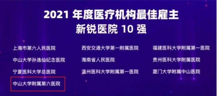 附屬第六醫院榮登2021年度醫療機構最佳雇主新銳醫院10強