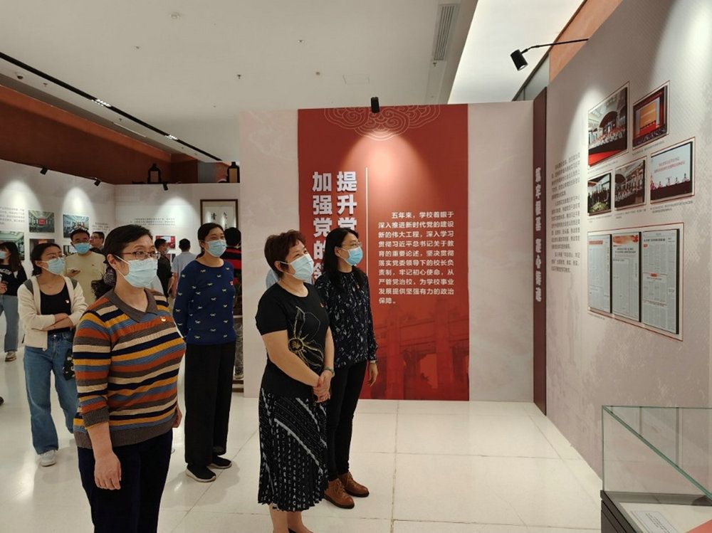 支部黨員通過參觀主題展覽設置的高舉旗幟、立德樹人、國之大者、人民至上4個展區,透過圖片、圖表、實物、模型及多媒體互動等多種方式,生動地“聆聽”了五年來學校心懷“國之大者”,奮進一流前列的故事,深入了解了學校自第十三次黨代會以來在堅持黨的領導、推進黨的建設、統籌戰略規劃、聚焦人才培養、加強隊伍建設、著力科學研究、提升服務能力等方面的重要發展成就和改革發展經驗。展覽內容豐富詳實,令人贊嘆,極大地增強了支部黨員們的自豪感、責任感和使命感。