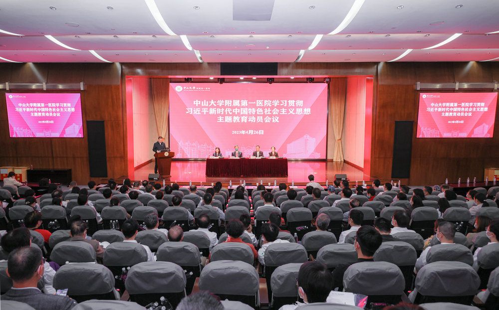 中大新聞網(wǎng)訊(通訊員王玲)4月26日,附屬第一醫(yī)院召開(kāi)學(xué)習(xí)貫徹習(xí)近平新時(shí)代中國(guó)特色社會(huì)主義思想主題教育動(dòng)員會(huì)議。醫(yī)院黨委書記駱騰作動(dòng)員講話,中山大學(xué)主題教育巡回指導(dǎo)九組組長(zhǎng)王天琪作指導(dǎo)講話,醫(yī)院黨委副書記、紀(jì)委書記何韻主持會(huì)議。中山大學(xué)主題教育巡回指導(dǎo)九組副組長(zhǎng)呂懿娜,指導(dǎo)組成員胡國(guó)方、肖瑩,醫(yī)院黨政領(lǐng)導(dǎo)班子成員、黨委委員、紀(jì)委委員,各黨(總)支部書記、團(tuán)委書記,臨床科室主任、科護(hù)長(zhǎng),行政后勤各處、直屬科室負(fù)責(zé)人等200余人參加動(dòng)員會(huì)議。