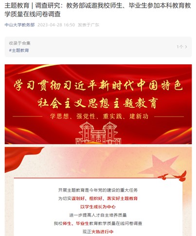 4月28日,教務(wù)部黨總支為切實謀劃好、組織好、落實好主題教育,針對全體在校本科生、2017屆、2022屆本科畢業(yè)生和全體在職在崗并有承擔(dān)教學(xué)任務(wù)的全體教師、輔導(dǎo)員、管理人員等進行為期一個月的我校師生、畢業(yè)生教育教學(xué)質(zhì)量在線問卷調(diào)查,以學(xué)生成長為中心,進一步提高我校人才自主培養(yǎng)質(zhì)量。