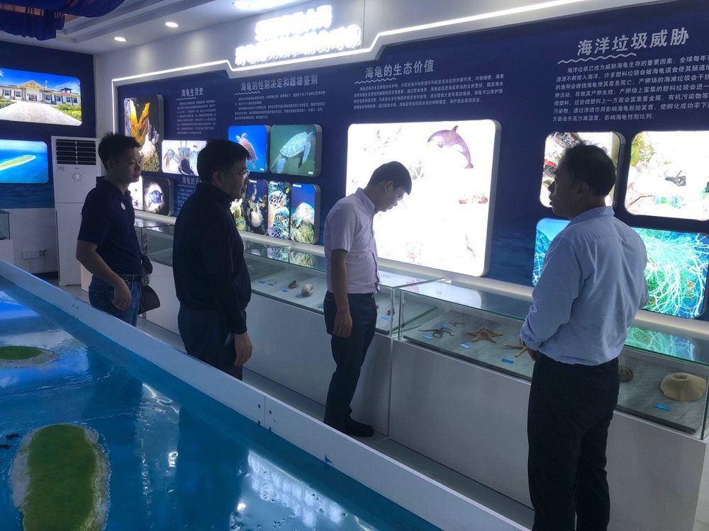 西沙群島生物多樣性極高。其中,位于西沙宣德群島東北部的七連嶼是目前國內最大的綠海龜自然產卵場,有著“海龜天堂”的美譽。在三沙市北島海龜保護中心,三沙市海洋保護區(qū)管理局副局長符宵銘向調研團講解了海龜保護現(xiàn)狀以及三沙市開展海龜保護所采取的措施。工作人員不僅每天進行環(huán)島巡護、隨時做好海龜緊急救助的準備,而且還會經常舉辦科普宣講活動,通過多種形式發(fā)動公眾共同守護海龜。海龜保護團隊正在用自己的不懈努力,踐行著“綠水青山就是金山銀山”的使命擔當。