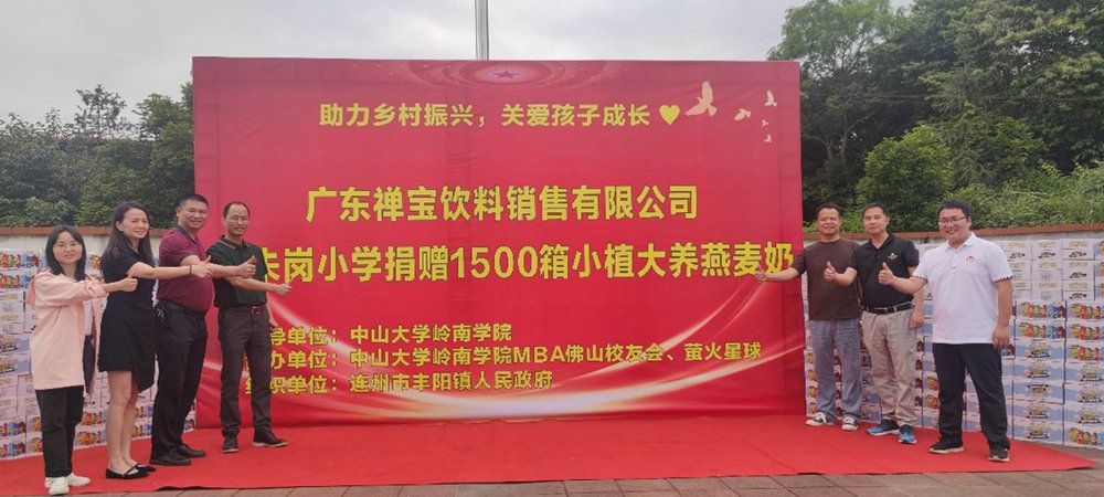 在學院黨委的組織下,嶺南學院佛山MBA校友會積極響應,圍繞師生營養健康這一領域專門策劃了“助力鄉村振興,關愛孩子成長”捐贈活動,并在5月14日聯系廣東禪寶飲料銷售有限公司為主崗小學捐贈1500箱高品質燕麥奶,供師生們飲用。除此之外,學院其他校友組織也紛紛策劃,計劃在“六一”期間為學校繼續捐贈營養食品等,希望孩子們在良好的環境中茁壯成長,為中山大學的扶貧工作繼續添磚加瓦。