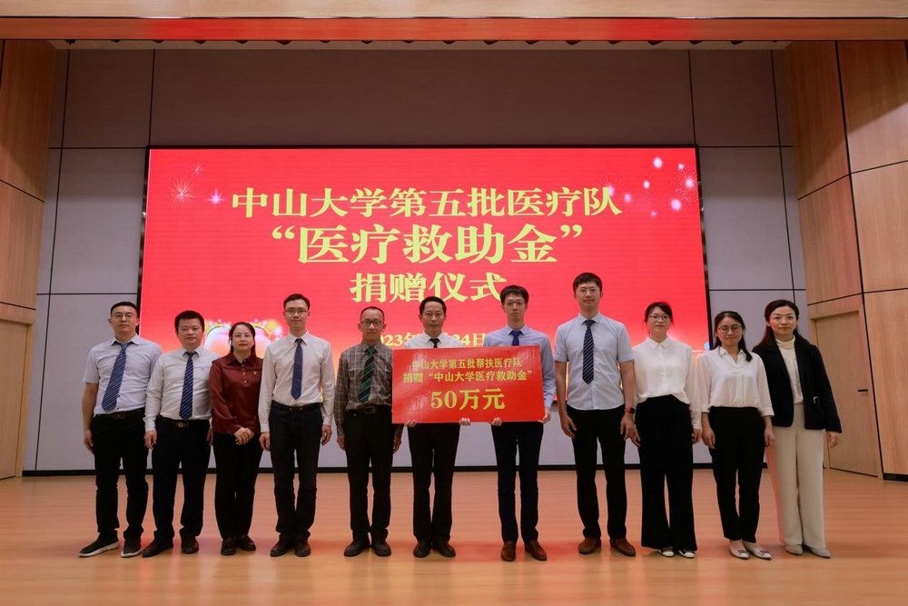 會上舉行了第二批“中山大學醫療幫扶鳳慶救助金”捐贈儀式。2023年,學校第五批“組團式”派駐醫療隊延續一貫傳統,主動放棄領取績效工資,將這些未領取績效薪酬捐贈給“中山大學醫療幫扶鳳慶救助金”賬戶,用于特困病患、建檔立卡貧困戶、孤兒等人群的緊急醫療救助。