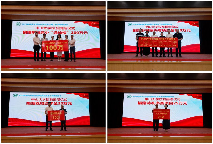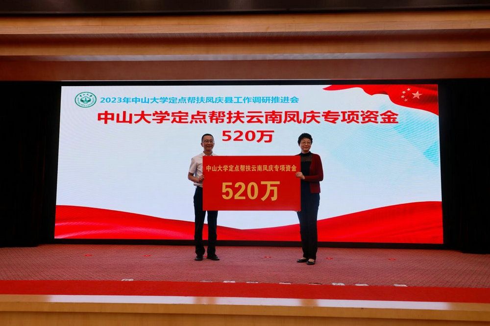 會上舉行了2023年中山大學定點幫扶鳳慶捐贈儀式、幫扶項目簽約儀式。今年,中山大學直接投入鳳慶縣幫扶資金500多萬元,引進校友資源捐贈各類資金200多萬元。