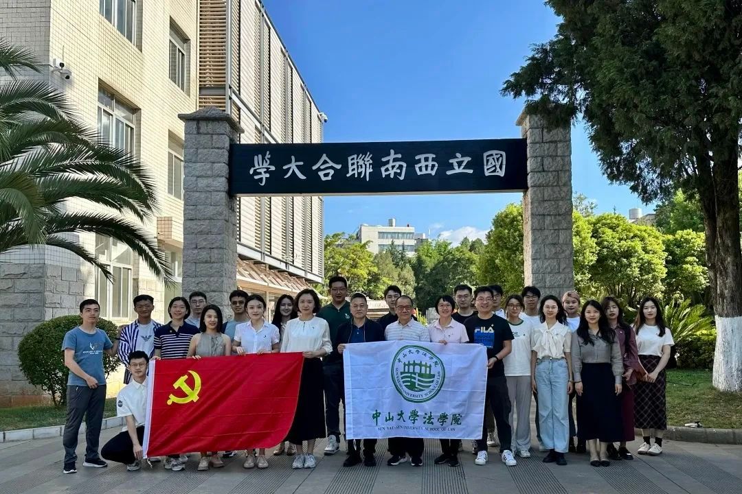 中大新聞網訊(通訊員林丹丹)為推進主題教育走深走實,引領師生持續深學細悟篤行、學懂弄通做實習近平新時代中國特色社會主義思想,5月26日至28日,法學院黨委組織師生赴云南開展紅色教育實踐活動,先后在昆明、澄江兩地進行參觀考察、校史教育、普法宣傳、交流調研。學院黨委書記梅成達、黨委副書記肖楠、教工第一黨支部書記聶立澤教授、教工第四黨支部書記楊小強教授、梁丹妮副教授、廖艷嬪副教授、鄧偉助理教授、徐璐博士后、團委書記熊琳、黨務秘書林丹丹、學生黨員及入黨積極分子共27人參加了此次云南之行。