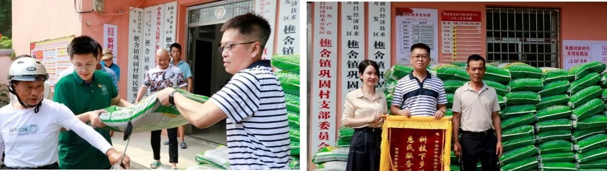 6月3日,學院師生來到南昌經開區樵舍鎮開展生態調研并捐贈土壤改良劑。南昌經開區樵舍鎮黨委書記徐小虹、黨委副書記聶峰、人大主席方義發等有關領導干部參加活動,并對中大師生的到來表示熱烈歡迎。捐贈儀式上,徐小虹書記向中大師生介紹了樵舍鎮基本情況和鄉村振興重點工作。湯葉濤教授和彭靈靈老師結合當地發展實際和環境學院優勢技術與當地領導干部深入交流。為了表達對中大師生的感謝,鞏固村黨支部書記孫文海代表“村兩委”班子向學院贈送錦旗。捐贈儀式結束后,學院師生與當地村民熱情交流,宣傳科學種植方法,以實際行動參與到鄉村生態文明建設的工作中。