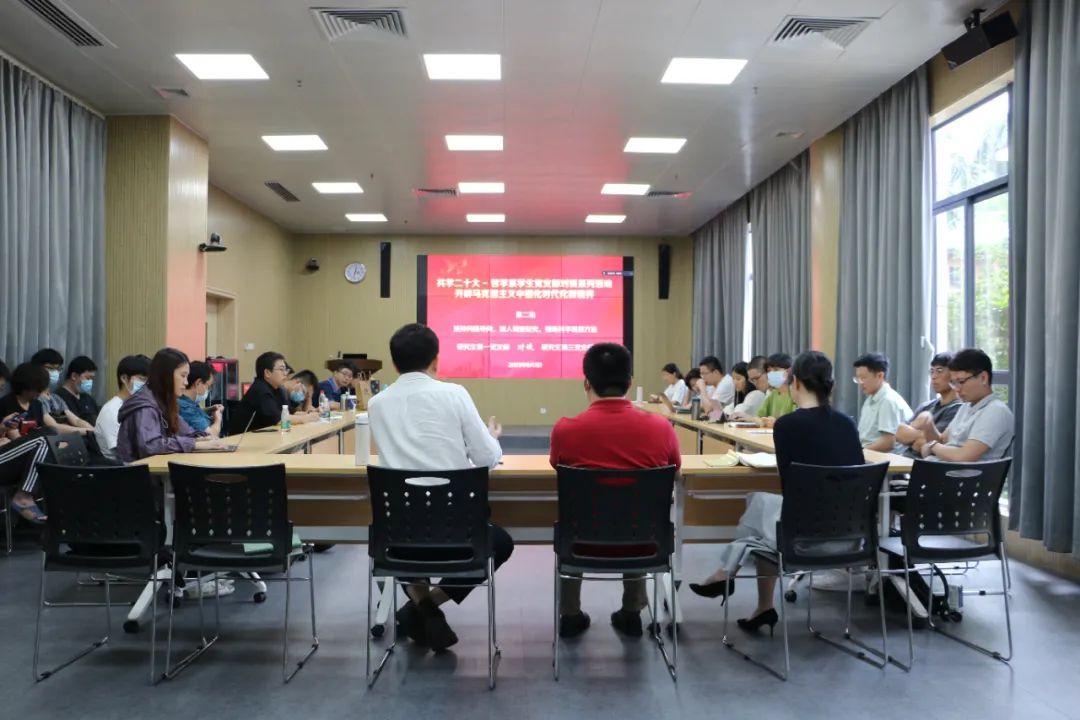 根據(jù)活動(dòng)安排,哲學(xué)系黨委分別于6月2日和6日,在錫昌堂103會(huì)議室組織開展了三場共學(xué)對(duì)談。活動(dòng)開始前哲學(xué)系黨委副書記王莉婧介紹了舉辦活動(dòng)的初衷和意義,并帶領(lǐng)大家集中學(xué)習(xí)了黨的二十大報(bào)告。