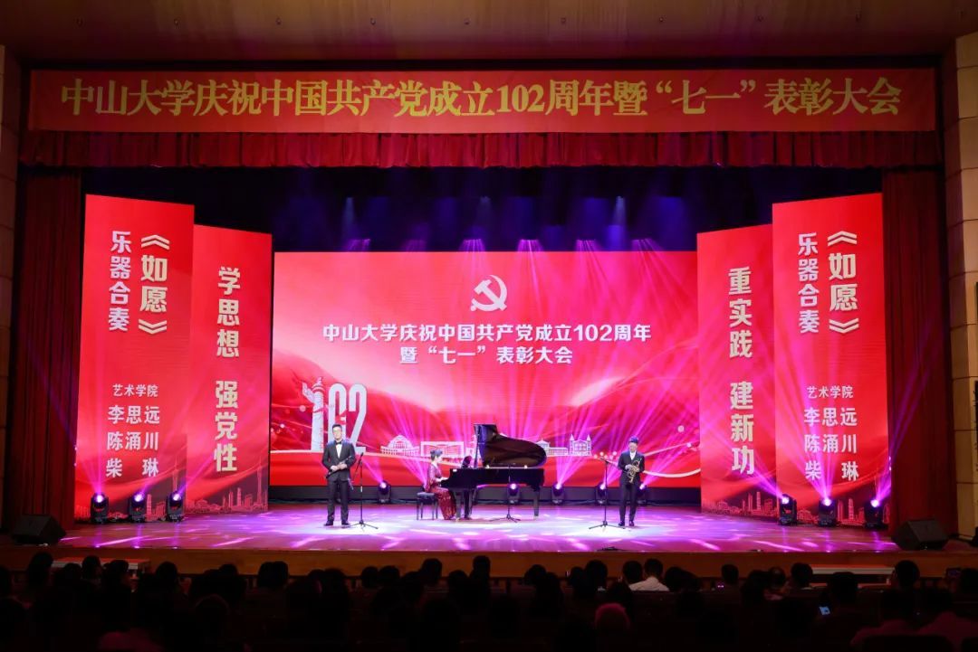中大新聞網(wǎng)廣州7月1日電(記者余婷)6月30日下午,中山大學(xué)慶祝中國(guó)共產(chǎn)黨成立102周年暨“七一”表彰大會(huì)在廣州校區(qū)南校園梁銶琚堂舉行。