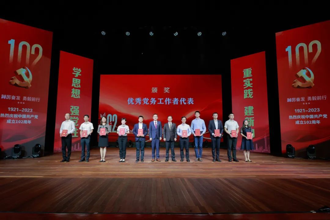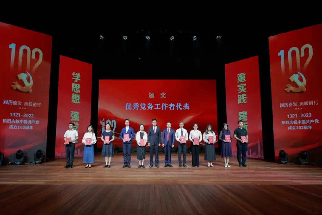 優(yōu)秀黨務(wù)工作者代表上臺(tái)領(lǐng)獎(jiǎng)