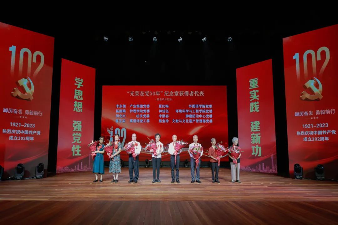 李永便、楊麗娟、何北興、曾玉蘇、夏紀(jì)梅、鐘培伍、李麗容、熊寶珍8位獲得“光榮在黨50年”紀(jì)念章的黨員同志來(lái)到現(xiàn)場(chǎng),與會(huì)人員用掌聲和鮮花向老黨員代表致以崇高的敬意。