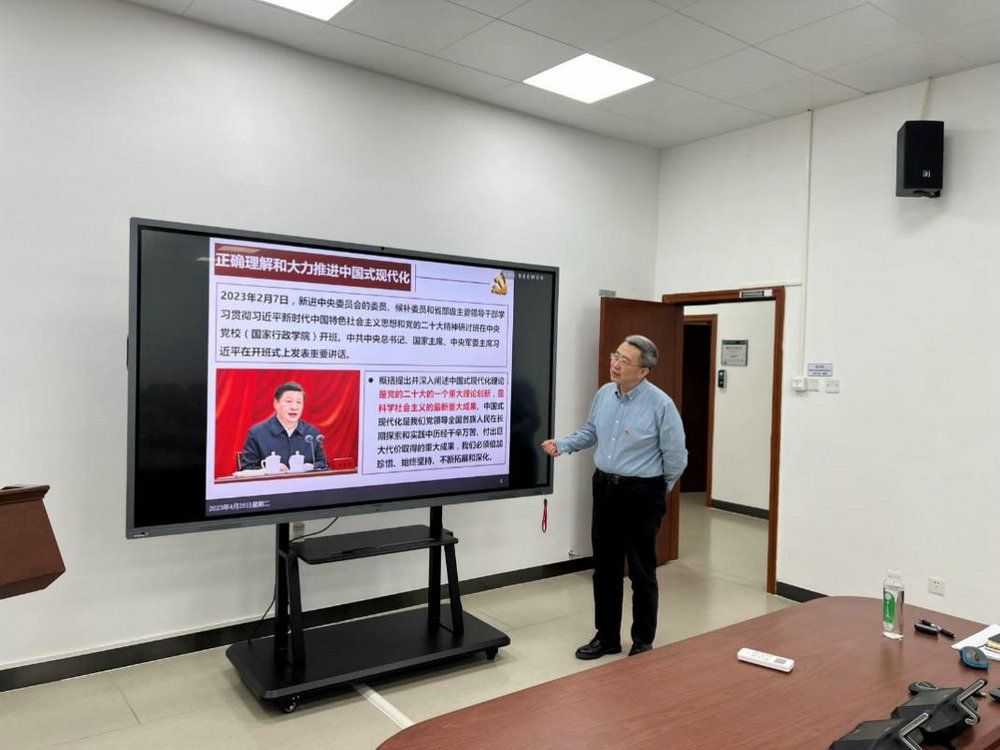 在主題教育專題讀書班首次集體學(xué)習(xí)會上,薛德升同志以《學(xué)習(xí)黨的二十大精神,準(zhǔn)確理解和把握中國式現(xiàn)代化》為題作專題報告進(jìn)行領(lǐng)學(xué)。黨的二十大報告全面、深入和系統(tǒng)地對中國式現(xiàn)代化進(jìn)行了闡述,是黨的重大理論創(chuàng)新,也是科學(xué)社會主義的最新重大成果。他解讀了新發(fā)展思想以及黨的二十大報告中對中國式現(xiàn)代化的提出,并從地理學(xué)的專業(yè)視角出發(fā),系統(tǒng)闡述了全球視野下十六世紀(jì)以來世界現(xiàn)代化發(fā)展的歷史,介紹對“發(fā)展”界定的演變。通過對比西方語境下建構(gòu)的發(fā)展理論,進(jìn)而帶領(lǐng)讀書班成員深刻體會到習(xí)近平總書記在總結(jié)中國共產(chǎn)黨人長期積累的經(jīng)驗智慧后提出中國式現(xiàn)代化的偉大意義,認(rèn)識到中國式現(xiàn)代化為全面建成社會主義現(xiàn)代化強(qiáng)國、實現(xiàn)中華民族偉大復(fù)興指明了一條康莊大道。