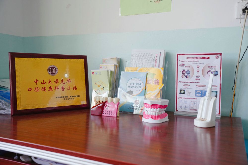 服務隊創造性地探索新模式:以學院師生參與研發的“定位式口腔多疾病的AI識別系統”為核心,在邊防哨所、鄉村社區、大中小學、幼兒園,成功建立了7個“口腔健康科普小站”。