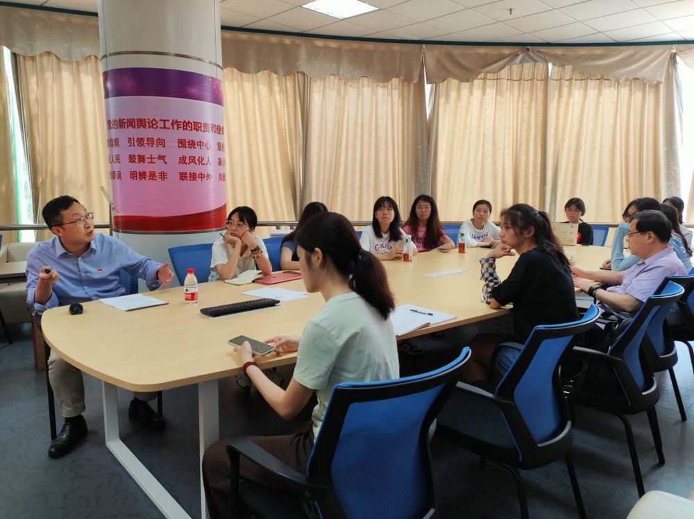 6月9日,學(xué)院黨委委員、副院長鄧?yán)矸鍨樾侣剛鞑W(xué)研究生黨支部講授了題為《意識形態(tài)工作的實(shí)踐形態(tài)及其媒介化轉(zhuǎn)向》的黨課。10日,支部同學(xué)圍繞意識形態(tài)工作和中國故事傳播,與外國語學(xué)院英語系研究生第一黨支部舉行了支部共建活動,共同探索新聞傳播專業(yè)與外國語言文化專業(yè)的交叉性與互補(bǔ)性。雙方黨員同學(xué)在主題教育理論學(xué)習(xí)的基礎(chǔ)上,就如何對外詮釋中國制度和中國文化進(jìn)行了學(xué)術(shù)層面的探討,將黨課學(xué)習(xí)引向了深處、落到了實(shí)處。