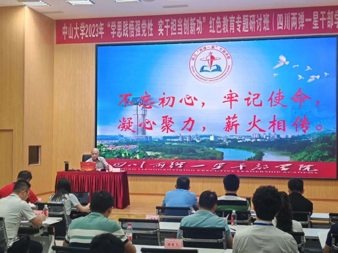 中大新聞網廣州7月25日電(通訊員趙曉江)7月17日至21日,中山大學組織來自不同院系、附屬醫院、職能部門的39名青年人才和中層領導人員赴四川兩彈一星干部學院開展為期5天的“學思踐悟強黨性 實干擔當創新功”紅色教育專題研討班,聆聽“兩彈一星”故事,感悟“兩彈一星”偉業,弘揚“兩彈一星”精神,努力建設忠誠干凈擔當的高素質干部隊伍和高水平專業化人才隊伍,推動學習貫徹習近平新時代中國特色社會主義思想主題教育走深走實。