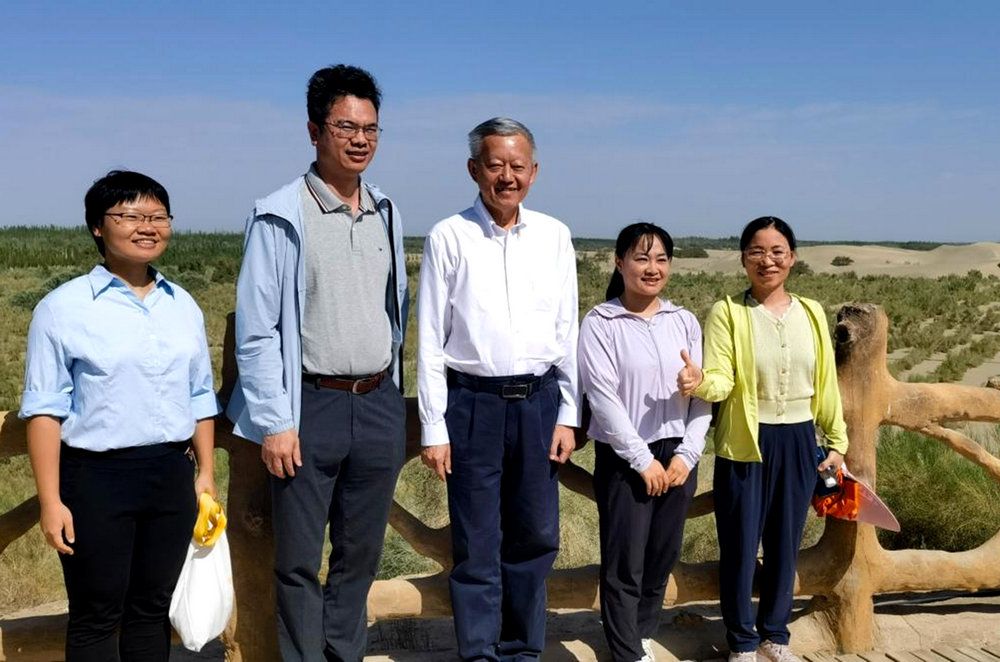 中山大學黨委書記陳春聲帶隊赴新疆麥蓋提防風固沙生態林開展調研,與醫院援疆博士研究生合影