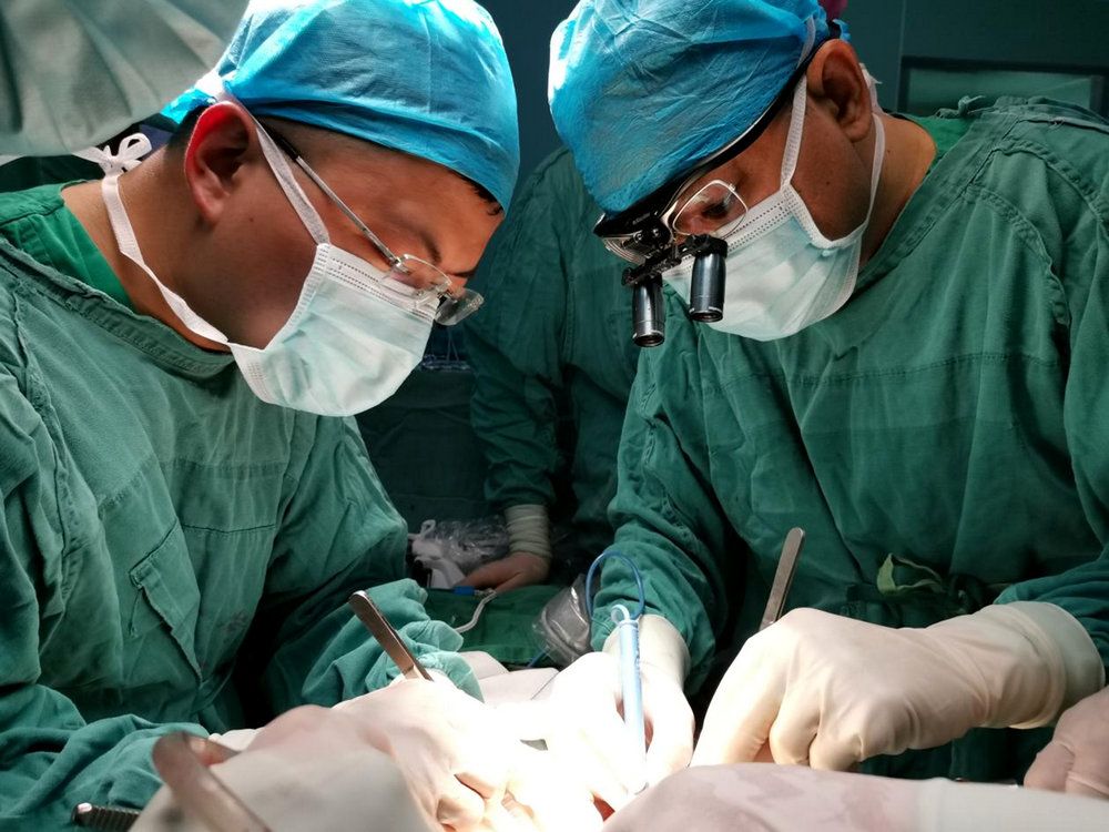 劉超副院長(右)在喀地一院開展胰十二指腸切除手術