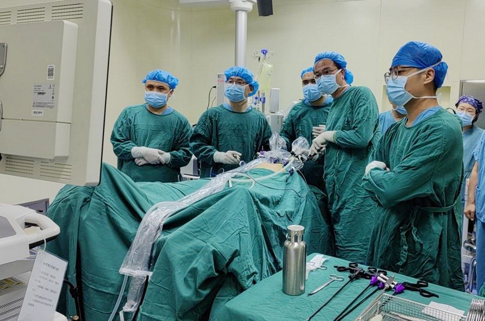 與此同時,林天歆副院長帶領工作室團隊成員董文教授、陳長昊副教授在喀地一院和新醫大五院開展了手術演示,同時在當地開展了教學查房、疑難病例會診、科研培訓講座,還召開了泌尿學科建設推進座談交流會,從多個方面推進醫療幫扶的“帶土移植”。工作室成員、泌尿外科賴義明副教授駐新醫大五院泌尿外科開展醫療幫扶,成功開展了院內首例斜跨位超細經皮腎鏡碎石術。