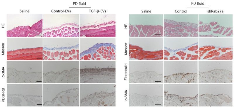 腹膜透析是全球約380萬終末期腎病患者常見的腎臟替代治療選擇之一。然而,腹膜纖維化導致的腹膜功能喪失和超濾功能衰竭限制了腹膜透析的應用。在長期腹膜透析過程中,受損的腹膜間皮細胞通過與成纖維細胞、巨噬細胞和血管內皮細胞等各種細胞間的相互作用觸發一系列損傷反應。成纖維細胞的激活是腹膜纖維化進展的重要關鍵步驟之一,受損的間皮細胞如何傳遞信號激活成纖維細胞目前仍不清楚。