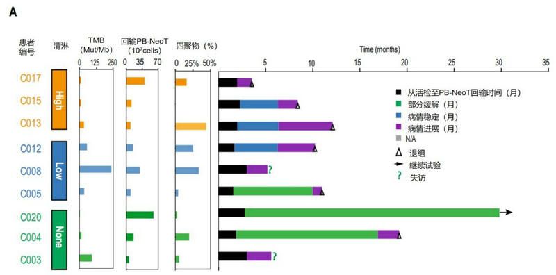綜上,本研究表明,經由腫瘤患者外周血制備個性化Neo-T過繼轉移治療過程中,不同的清淋化療劑量耐受性良好,安全可控。并且在無清淋化療預處理情況下仍能夠介導持久的腫瘤消退。