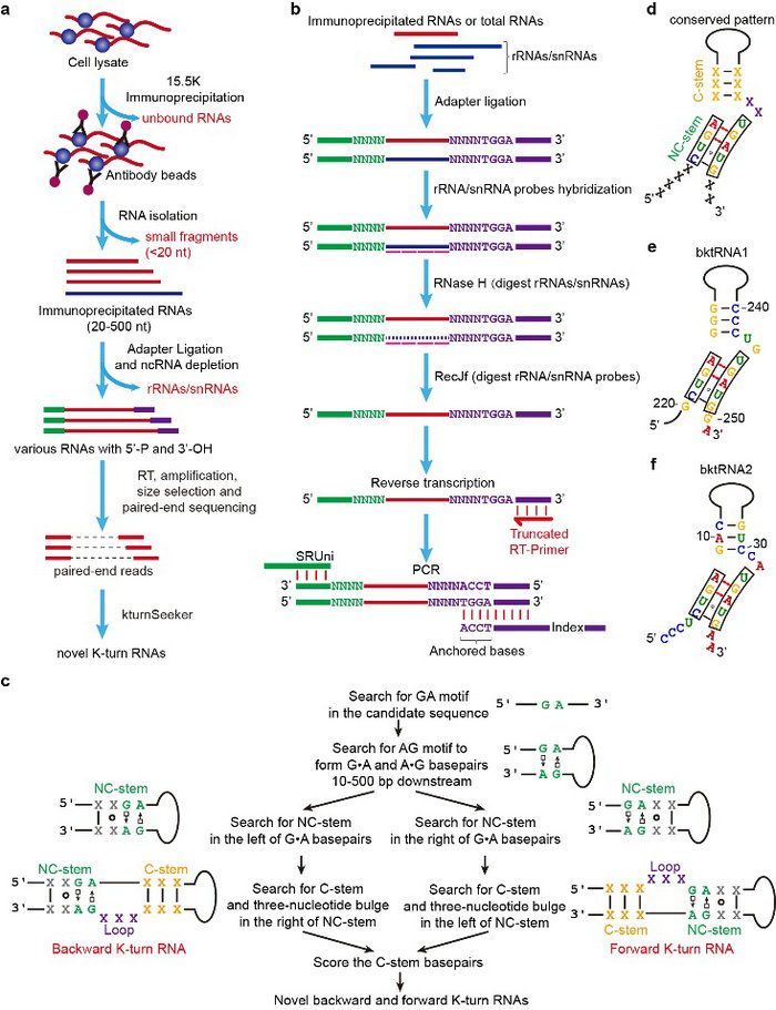 圖1 開發新的RIP-PEN-seq測序技術和計算機算法kturnSeeker發現人類的bktRNA