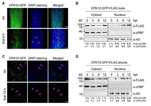 圖1. 低氧誘導磷酸化的CPK12由細胞質向細胞核轉移。